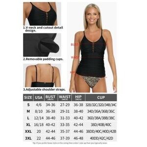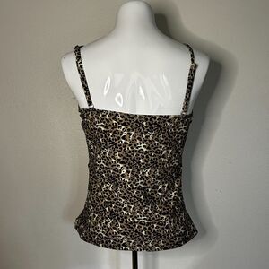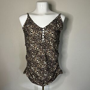 RELLECIGA Women's Large Leopard V Neck Shirred Tankini Tank Swimsuit Top