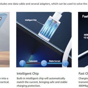 Connectors: USB to Type-C, USB to iPhone, Type-C to Type-C, Type-C to iPhone, Type-C to Micro
