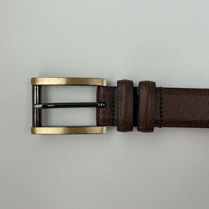 REMO TULLIANI 5173 Belt Men Sz 54 Brown Genuine Leather Solid Brass Buckle Italy
