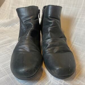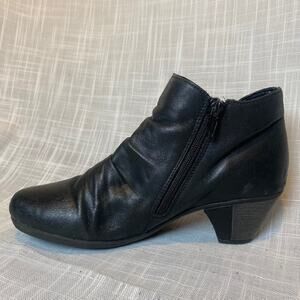 REMONTE by REIKER Black Leather ANNEMARIE Ruched Zip Ankle Boots Womens 6.5