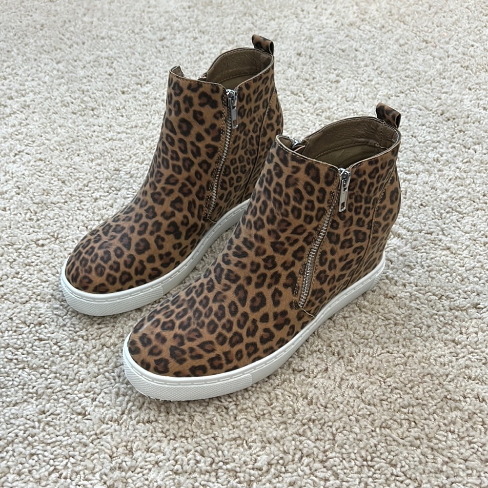 Leopard Print Zip Bootie Wedge