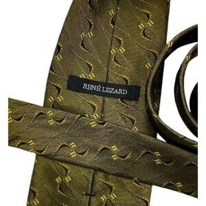 RENÉ LEZARD Men's 100% Silk Necktie LUXURY Tie Green Geometric W:3.5" EUC