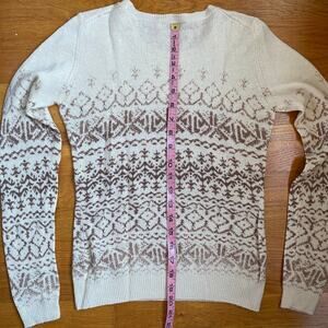 Fine knit wool/cashmere Nordic motif sweater. Perfect for wearing beneath jackets/blazers since it is thin.