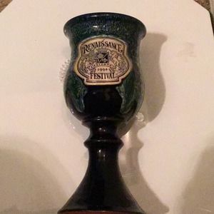 What a great way to commemorate the RENAISSANCE FESTIVAL here in ARIZONA. The Goblet is ceramic and fully fired/ glazed and safe for drinking / momento 3 1/2” wide 8 1/8” tall . No chips or issues GLAZED to perfection.