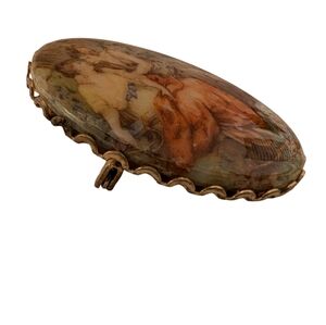RENAISSANCE REVIVAL Transferware 1950 Painting Brooch Vintage Cameo Brooch Pin