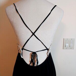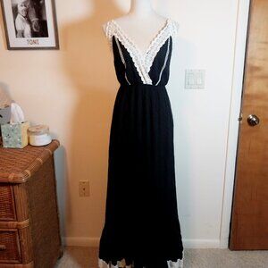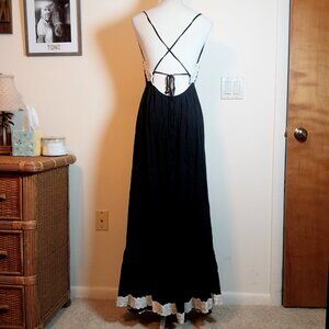 This is a RE-NAMED maxi dress is a black size S cotton/rayon blend with cream colored embroidery trim on the bodice and on the bottom their hem. It has a low back out with a very thin lace up tie.It is in great pre-owned condition and is a go anywhere dress in casual comfort. This dress has Discounted Shipping!!
