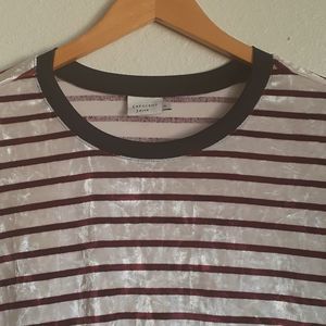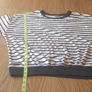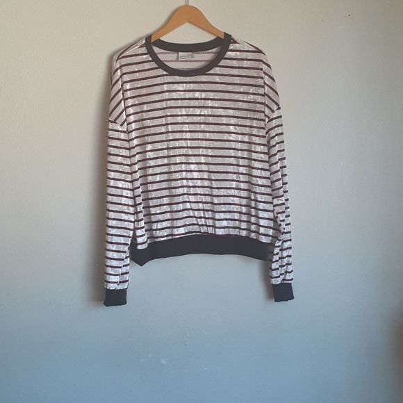 Velvet blouse top XL stripes colors oof white and burgundy and black pictures with approximate measurement for better fit idea.