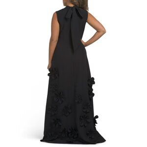 RENE BY RENE RUIZ Black Mock Neck Gown With 3d Appliques