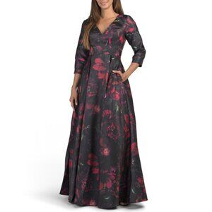 RENE BY RENE RUIZ Burgundy Three-quarter Sleeve Pleated Mikado Gown