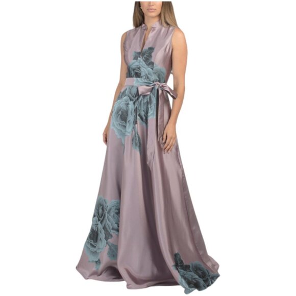 RENE BY RENE RUIZ Sleeveless Floral Gown With Belt