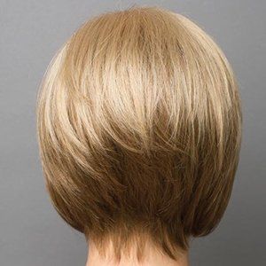 New in box with tags. Audrey is a short, smooth, layered bob with full fringe bang. A classic cut that never goes out of style, this one is a perennial 'top-seller'. Perfectly layered back. She's a basic wig cap in an average cap size with pull tabs at the nape for a secure fit. This piece is incredibly light, weighing less than 3 ounces. Synthetic. Shade Creamy Toffee is described as a beautiful light honey blonde, platinum, and dark blonde blend. MSRP $208.00 USD