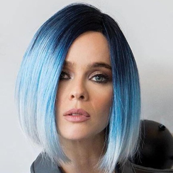 New in box with tags. Kai is a sophisticated sleek classic A-line bob with a side part, longer smooth layers that frame the face, and a shorter length back. Average size with a 100% HAND TIED LACE FRONT allowing off-the-face styling options and MONOFILAMENT PART for a truly natural part line. Some light perma-tease near the crown for volume and to hold the style. Open wefted back and sides for more ventilation. Bendable velvet covered ear tabs and adjustable straps at the nape for a comfortable and secure fit. Shade Melted Ocean is described as dark sapphire blue blending into capri blue & sky blue tones finishing into graphite white & the palest pastel blues (AS SHOWN IN LISTING PHOTOS). For those who enjoy bold, stunning colorful hair this is THE ONE. No need to bleach or dye your own healthy locks, just grab a wig and go for it! MSRP $366.00 USD