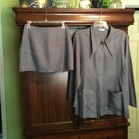 The shop I’ve purchased a lot of my clothes from the owner makes all the clothes there, wry few pieces which r one of a kind.Liliac linen mini that has back zip.a jacket that is same length pockets and one bottom @ top.mini.w.14..14L