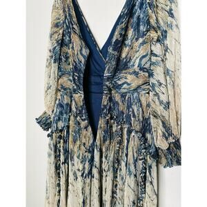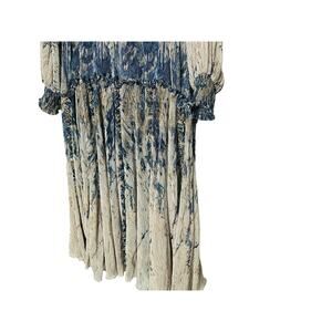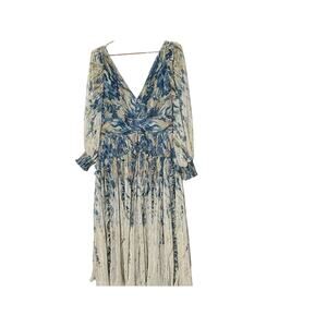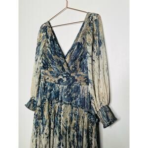 RENE RUIZ COLLECTION Blue Gold Swirled Floral Flowing Tiered Boho Maxi Dress 12