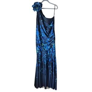 RENE RUIZ Collection NWT Blue Printed One Shoulder Gown Plus Sz 18
