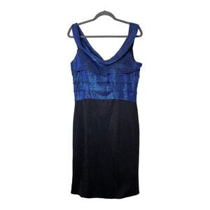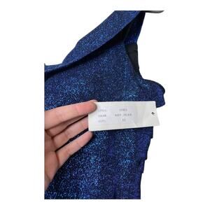 RENE RUIZ DRESS 12 METALLIC GLITTER BLUE BLACK TIERED OFF SHOULDER SHIMMER MINI