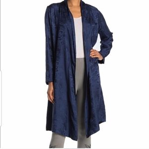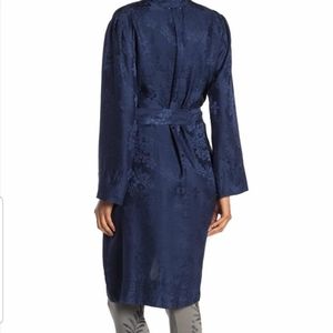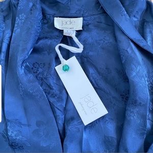 Luxurious and elegant, the Renee Jacquard Robe will have you singing in the streets (or your bathroom). Cut from sapphire blue silk and bedecked with brocade blooms, it's stunning as well as cozy. A side pocket and side tie make this robe fashionable and practical. This exquisite robe is, simply put, lovely.