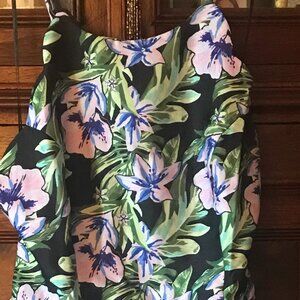 RENN: NWT BLACK AND PURPLE SATIN KNEE LENGTH HALTER DRESS SIZE M
