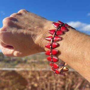 • Gorgeous Vintage unsigned 1950s Renoir Matisse Nefertiti Red Enamel & Copper Bracelet