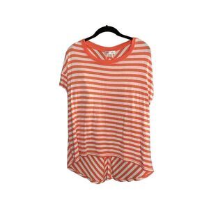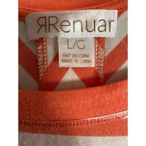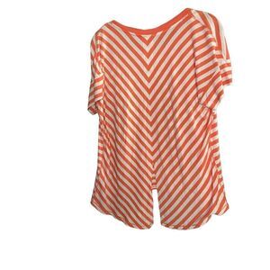 RENUAR women’s short sleeve, orange and white striped split back tunic large