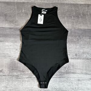 REORIA Ultimate Obsession Halter Bodysuit NEW Womens XL Black Snap Button