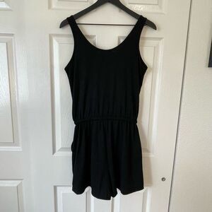 REORIA Womens Basic Summer Scoop Neck Sleeveless Tank Top Short Jumpsuit Romper Black Size Small