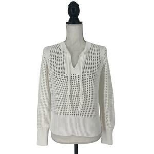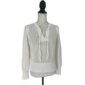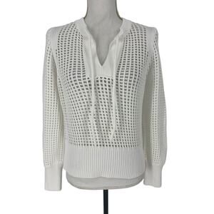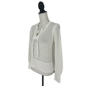 Effortlessly chic and breathable, this REPEAT white perforated sweater is the perfect transitional piece for layering or wearing solo. Crafted from soft cotton, it features a relaxed, oversized silhouette with a drawstring collar, ribbed trim, and airy perforated detailing. Lightweight yet cozy, it’s ideal for casual wear, travel, or elevated loungewear looks.