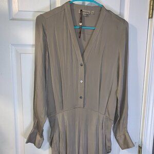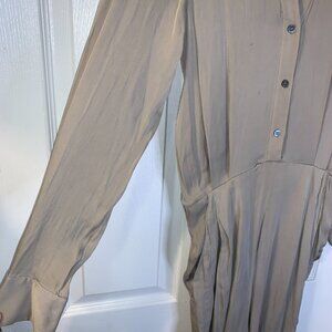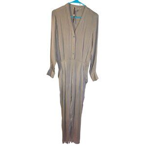 REPEAT Women's Silk Stretch Jumpsuit Size XS Tan Neutral FAIR Condition Upcycle