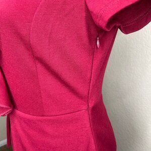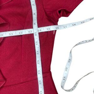 This dress features a solid red color with ruffle accents, adding a touch of flair to the classic design. The round neck and short sleeves provide comfort and versatility, while the zip closure ensures a secure fit. In a midi length, this dress is perfect for a variety of occasions, from formal events to casual outings.