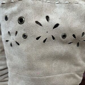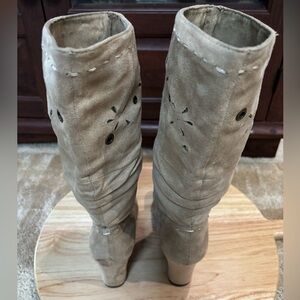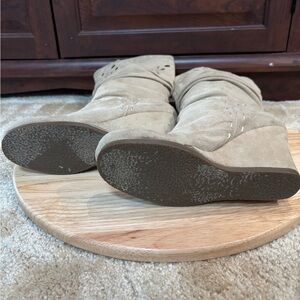 REPORT BEIGE SUEDE SLOUCHY DECORATIVE CUT OUT WEDGE BOOTS SIZE 7