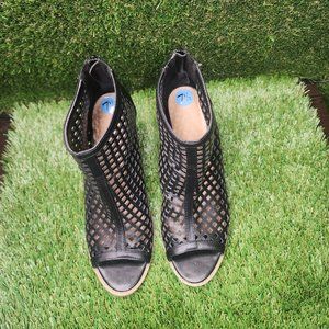 Size: 7.5 | REPORT | Black Leather Caged Bootie in Good Condition.