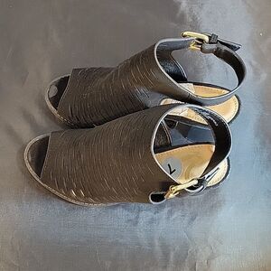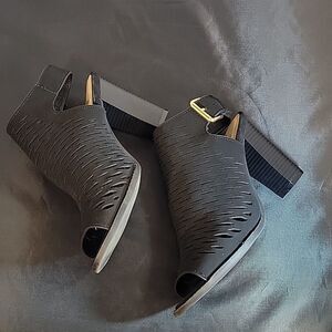 REPORT CUTOUT DESIGN DETAILS PEEP TOE ANKLE STRAP GOLD BUCKLE SANDAL SIZE 7 COLOR BLACK MADE WITH ALL MAN MADE MATERIALS HEEL HEIGHT MEASUREMENTS APPROX 3.75"INCHES THIS ITEMS IS PRE-OWNED EXCELLENT CONDITION WITH ONLY LIGHT SIGNS OF WEAR IF ANY CHECK THE PICTURES