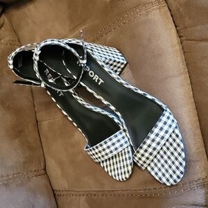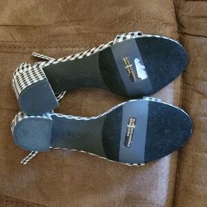 REPORT Pamela Fabric Gingham Ankle Strap Open Toe Block Sandals