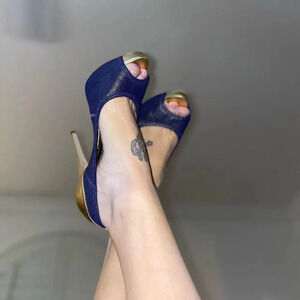 REPORT SIGNATURE PEEP TOE TOLUCA HEELS METALLIC GOLD AND DENIM BLUE SIZE 8