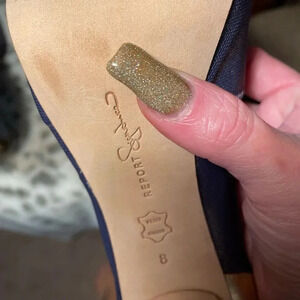 These shoes are gorgeous ! Gold and a metallic denim blue and with leather and man made uppers and a leather sole they are a quality shoe!