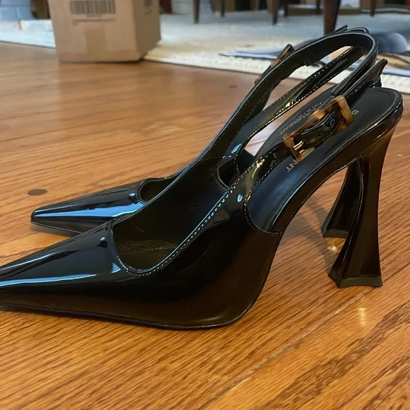 REPOST Saint Laurent Black Patent Leather Slingback Heels