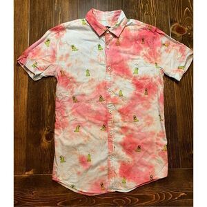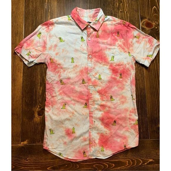 REPTAR RUGRATS Button Down Shirt-Tie Dye Red/Blue Cotton S/S EUC Small