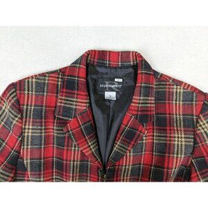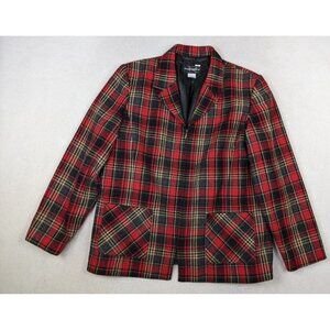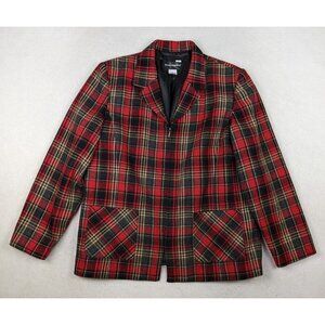 REQUIREMENTS - VTG WOMEN'S RED GRAY PLAID WOOL BLEND FULL ZIP BLAZER JACKET - 16