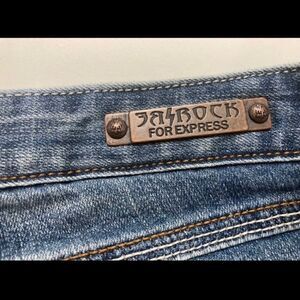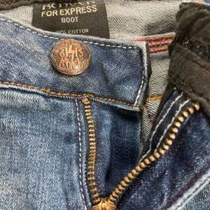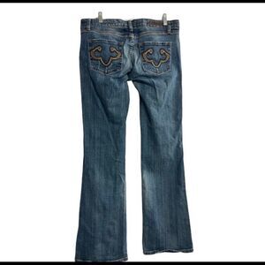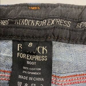 REROCK FOR EXPRESS, BootCut Size 8, Jeans Embroidered, pockets, distressed.