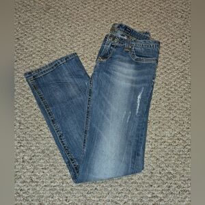 REROCK for EXPRESS Distressed Boot Blue Jeans Sz 10R Patch Work Women's