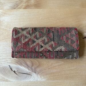RES IPSA CLUTCH WALLET TEXTURED VTG KILIM RUG FABRIC HANDMADE UNIQUE 1 OF A KIND
