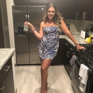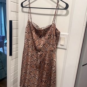 Never worn but did rip off tags. Love these RESA style dresses I just ordered a lot and haven’t found a chance to wear this one! It’s a size Medium and is so flattering. There’s stretch in back to allow for more bust area. It’s really flattering on the neck line and definitely makes for max cleavage even if you don’t think you have much to work with. That’s why I love them!