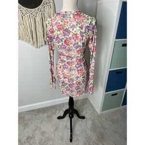RESA Sloane Mesh Long-sleeved Short Mini Dress in Rose Vintage Floral Print XS