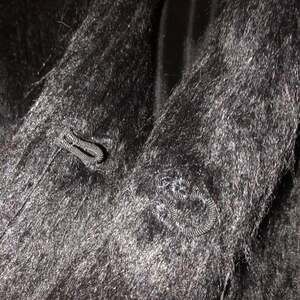 Black faux fur coat in soft faux fur with 2 hook-and-eye fasteners at front