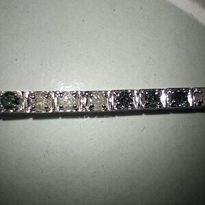 This Extraordinary 14Kt White Gold Tennis Bracelet Features Irradiated Blue & White Diamonds in Alternating sets of 3 with Interlinking Boxes Framing Each Prong-Set Diamond in an Endless (Eternity) Loop when Worn.