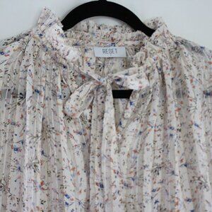 RESET White Multicolored Floral Long Sleeve Neck-Tie Wrap Blouse Size Small