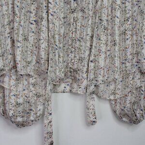 RESET White Multicolored Floral Long Sleeve Neck-Tie Wrap Blouse Size Small