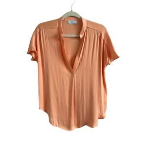 RESET Women's Small Orange Short Sleeve V-Neck Lightweight Slip On Blouse