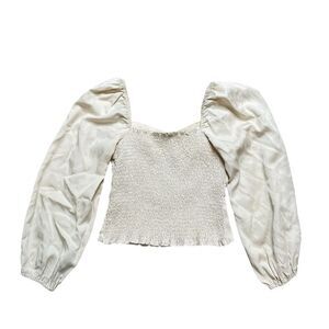 Expertly designed for a stunning silhouette, the Abby Top combines a sweetheart neckline, bustier bodice and elastic shoulders and wrists for the perfect fit. Featuring long puff sleeves, a smocked back and a convenient side zipper closure, this top ensures both style and comfort.