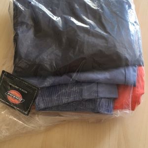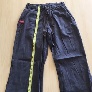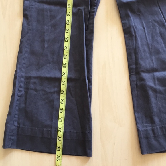 When packing your order I noticed that I had missed that the dark navy blue/gray pants had been folded and sewn to be shortened. I have included a pic here with measuring tape for you to see. If you would like, I can cancel the order OR if you still would like to try them out I can include the light blue new with tags Dickies that I had listed for $20 in complimentary for the inconvenience
